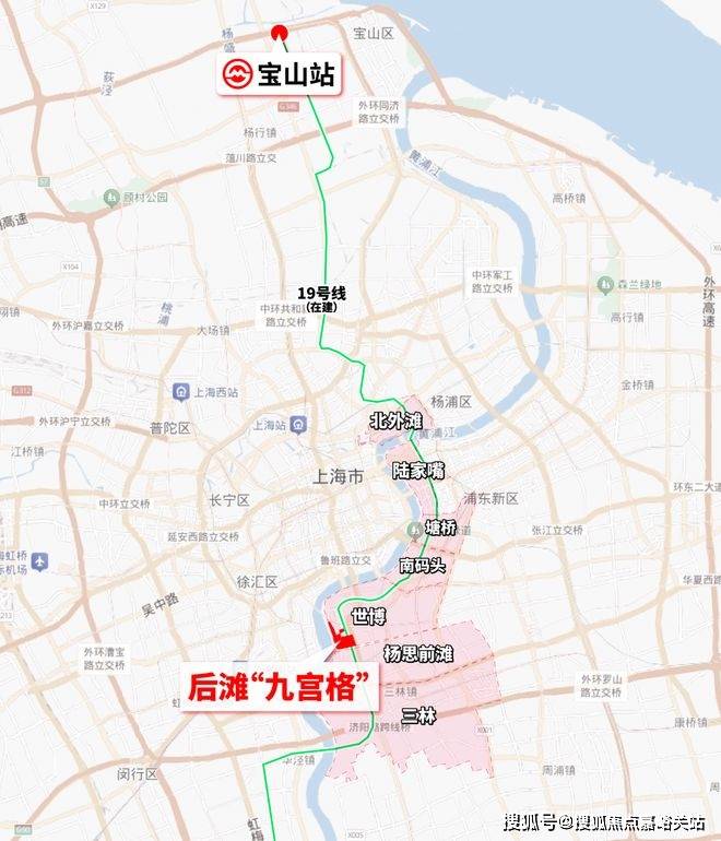 交通上,原有7号线后滩站,串联徐汇滨江、静安寺等核心商圈,但相对来讲,站点近后滩商办,离九宫格略远;但19号线的建设,真正打通了后滩任督二脉,
